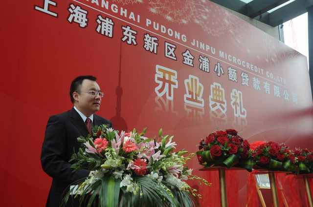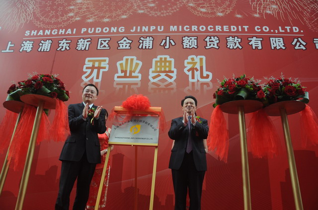 浦东新区区委副书记戴海波、市金融办党组书记季文冠共同为金浦小贷公司开业揭幕